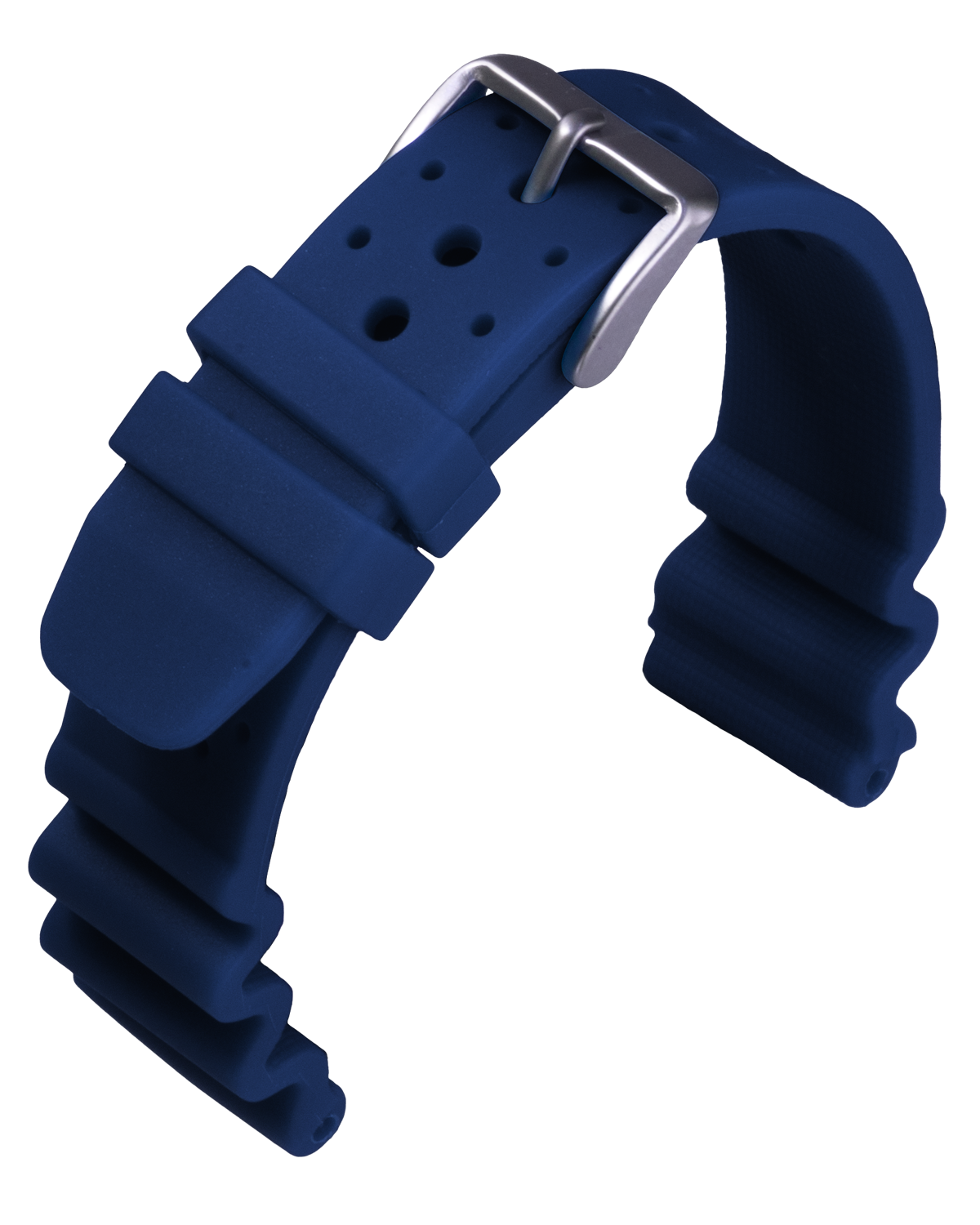 Taucherband aus Kunststoff mit Taucherskala und mattierter Edelstahl-Dornschließe.