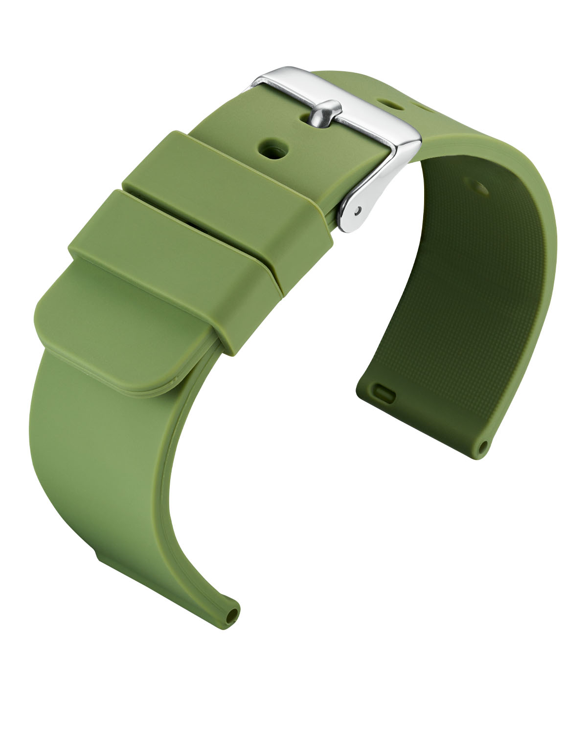Angenehm weiches Silikon-Uhrarmband, flache Ausführung, besonders widerstandsfähig, mit Edelstahl-Dornschließe