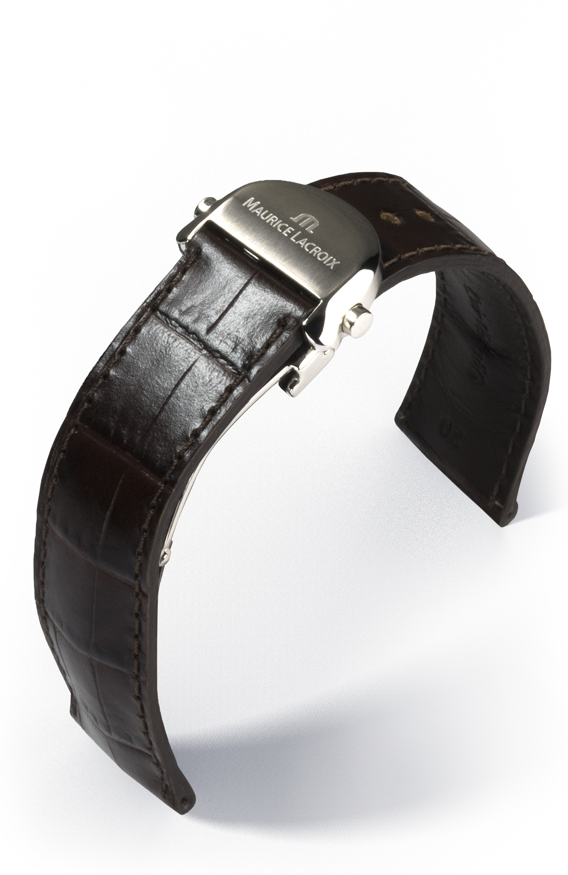 Hochwertiges Kalbleder-Uhrarmband mit Louisiana-Kroko-Prägung. Mattes, gepolstertes Band mit Schnittkante, ohne Symbol. Passend nur für Le Classic Faltschließe. Lieferung ohne Schieße.