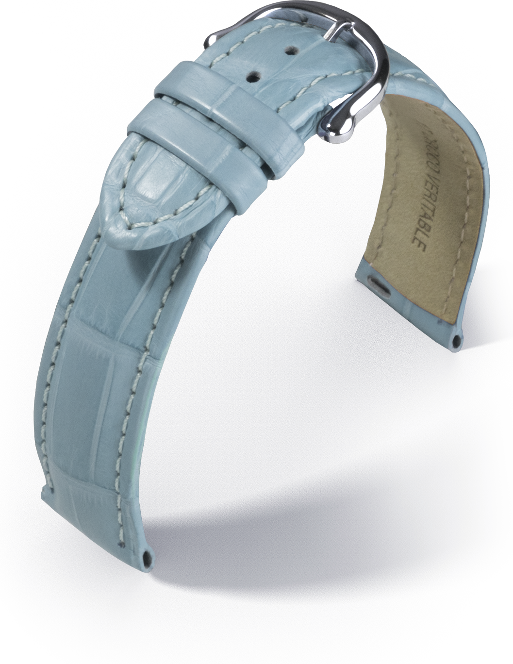 Uhrarmband aus echtem Louisiana-Krokodil-Leder. Rembordiertes und stark bombiertes Band mit Symbol. Inclusive Maurice Lacroix Dornschließe.