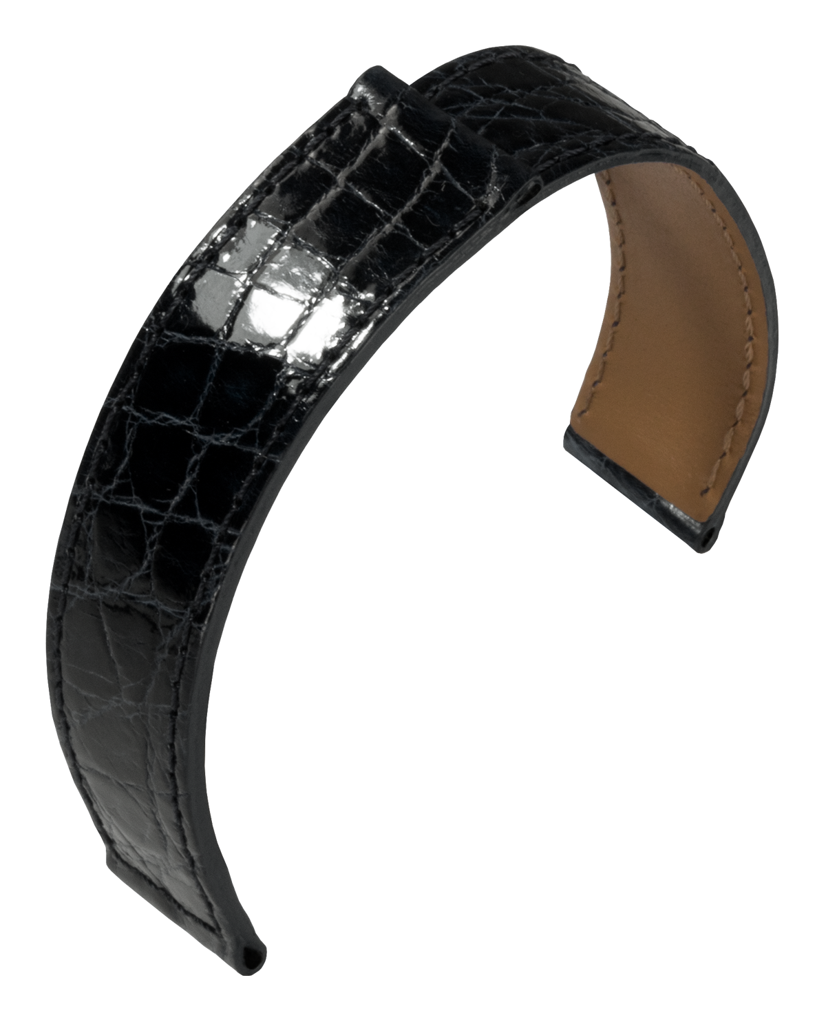 Hochglänzendes echtes Krokodilleder aus der Flanke, passend für Cartier Faltschließe mit handpolierter und handversiegelter Schnittkante und hautfreundlichem Futterleder.