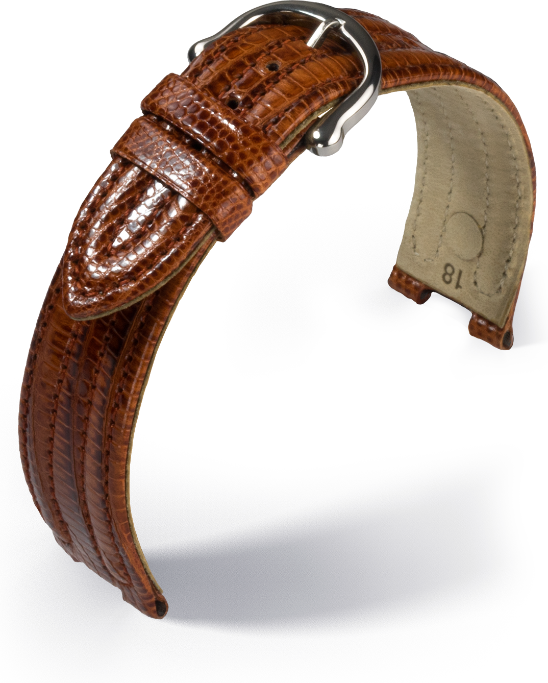 Uhrarmband aus echtem Teju-Eidechsen-Leder. Glänzendes, rembordiertes Band mit Wulst. Mit Symbol und Einschnitt passend für Calypso / Scala.
