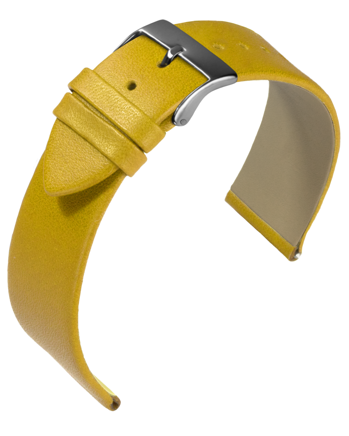 Hochwertiges, rembordiertes Kalblederband ohne Naht, mit besonders weicher Haptik und hautfreundlichem Futterleder, Edelstahl-Dornschließe.