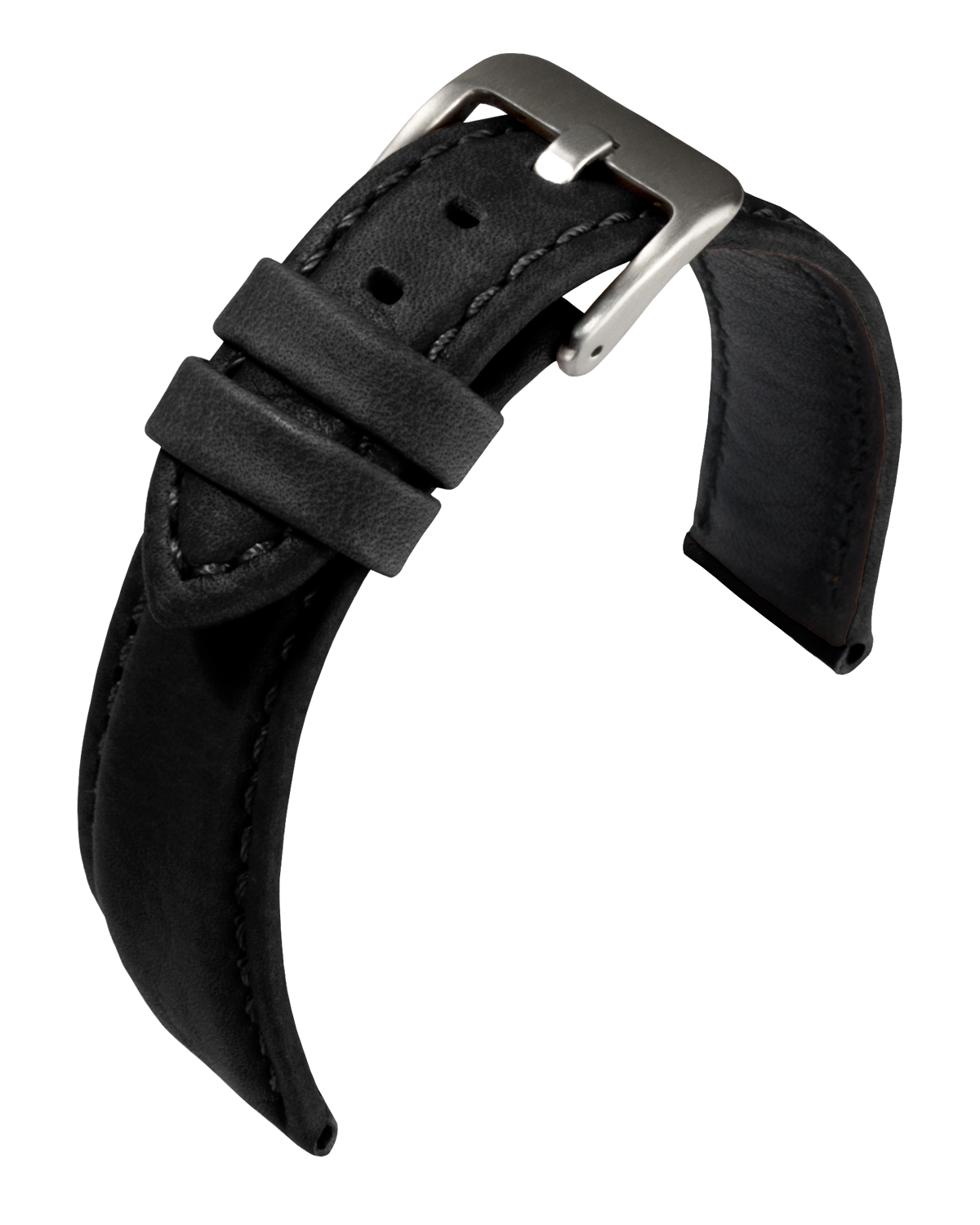 Mattes, wasserunempfindliches Rindleder mit hautfreundlichem Futterleder und massiver Edelstahl-Dornschließe.