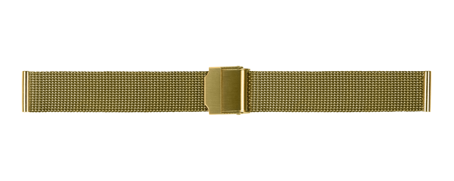 Gleichlaufendes Stalux Metall-Uhrarmband in feinem Milanaise Geflecht, Edelstahl vergoldet, Schiebeschließe, Anstoßbreite 16mm, Bandbreite 16mm, Schließenbreite 16mm