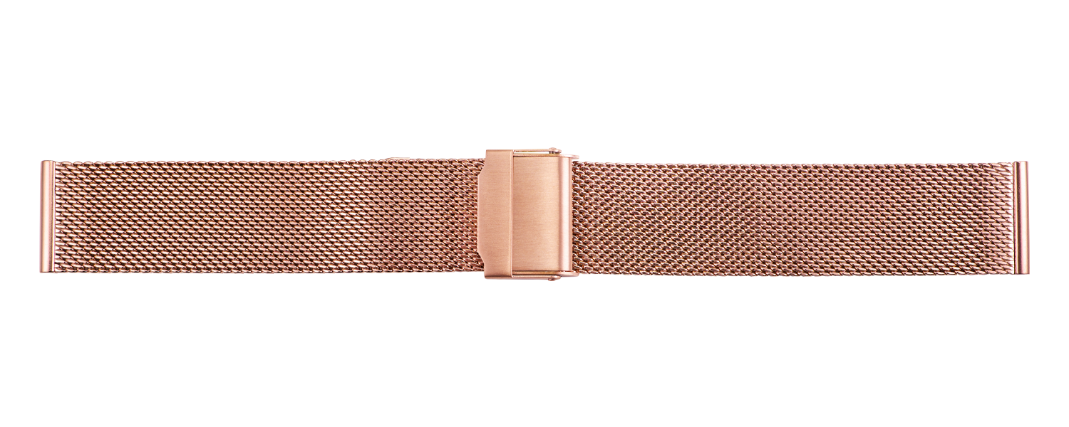 Gleichlaufendes Stalux Metall-Uhrarmband in feinem Milanaise Geflecht, Edelstahl rosevergoldet, Schiebeschließe, Anstoßbreite 16mm, Bandbreite 16mm, Schließenbreite 16mm