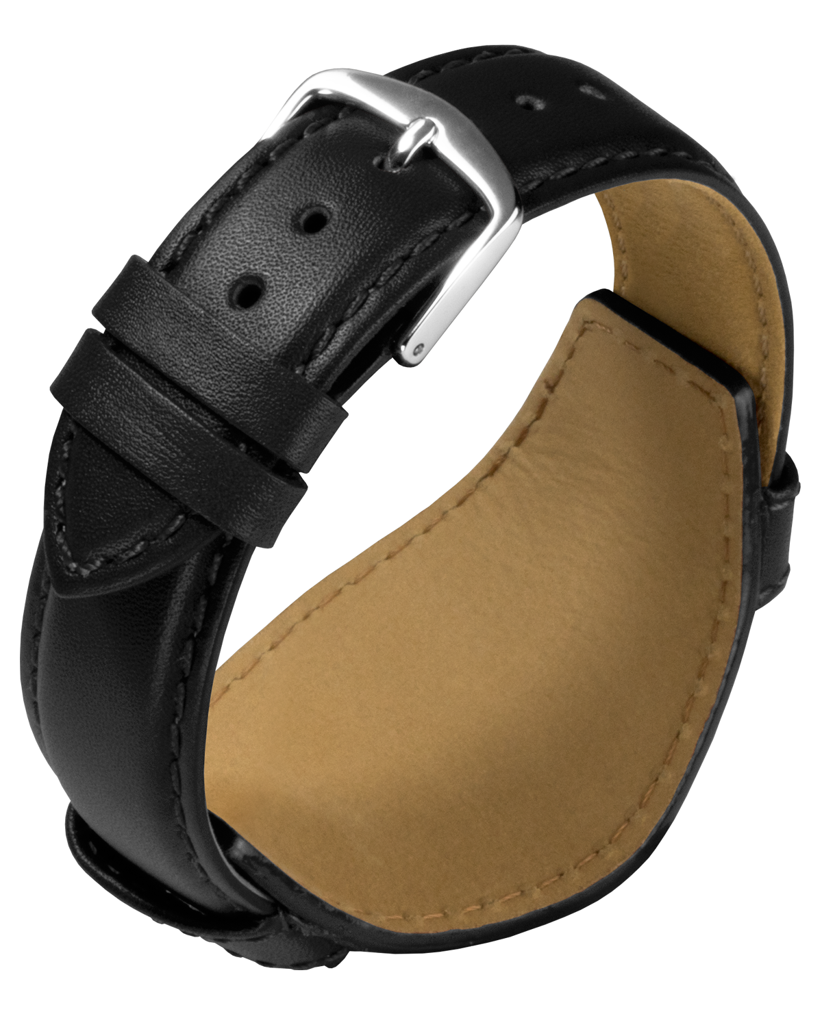 Echtes mattes Kalbleder-Uhrband mit Lederunterlage, hautfreundlichem Futterleder und Aluminium-Dornschließe.