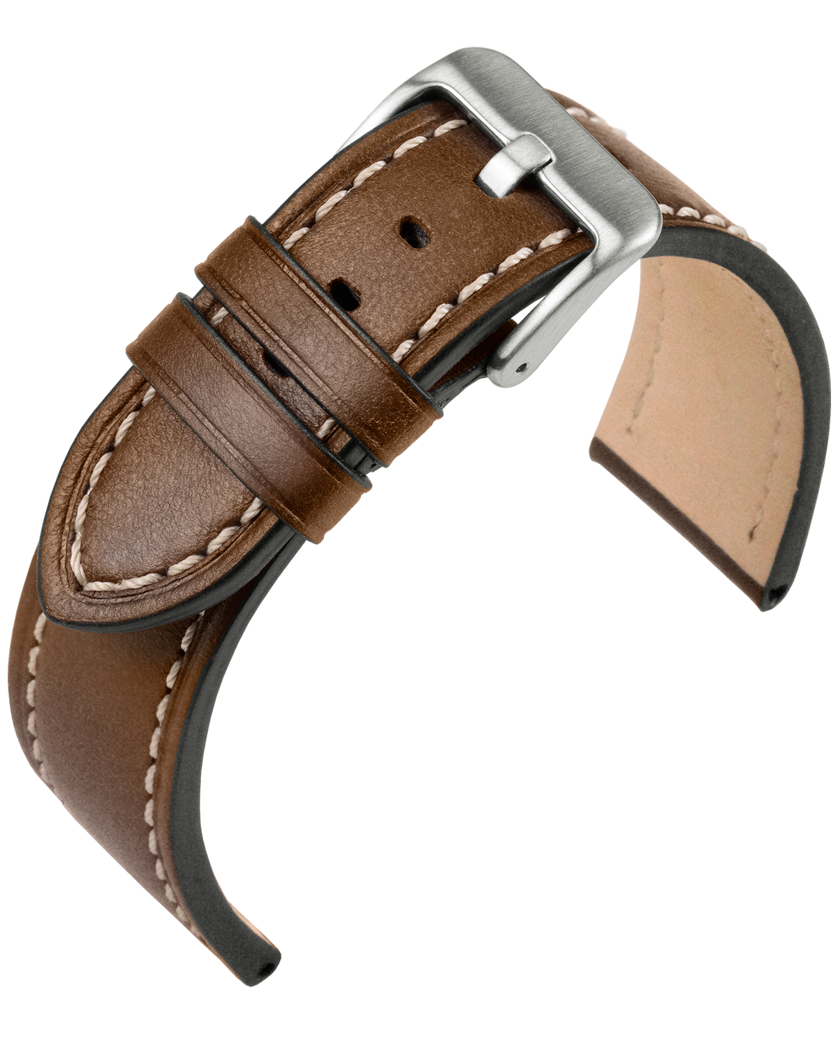 Strapazierfähiges Uhrarmband aus fein genarbtem Rindleder, hautfreundliches Futterleder, versiegelte Schnittkante,