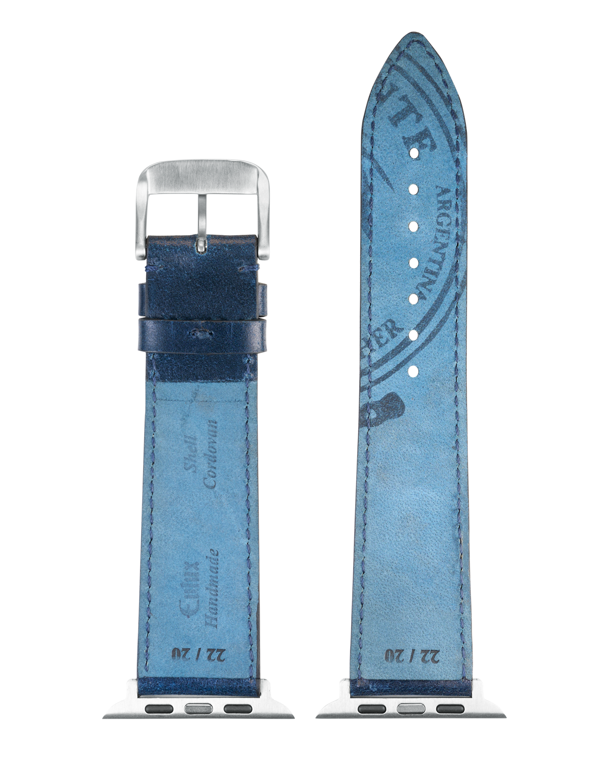 Exklusives Uhrarmband aus Leder argentinischer Arbeitspferde. Sowohl das Ober- als auch das Futterleder sind aus vegetabil gegerbtem Pferdeleder Shell Cordovan. Die Seiten sind handpoliert und versiegelt. Zur besonderen Eigenschaft dieses Leders gehört, dass die Oberfläche mit fortschreitender Tragedauer eine natürliche Patina bildet und seinen Charakter verändert.