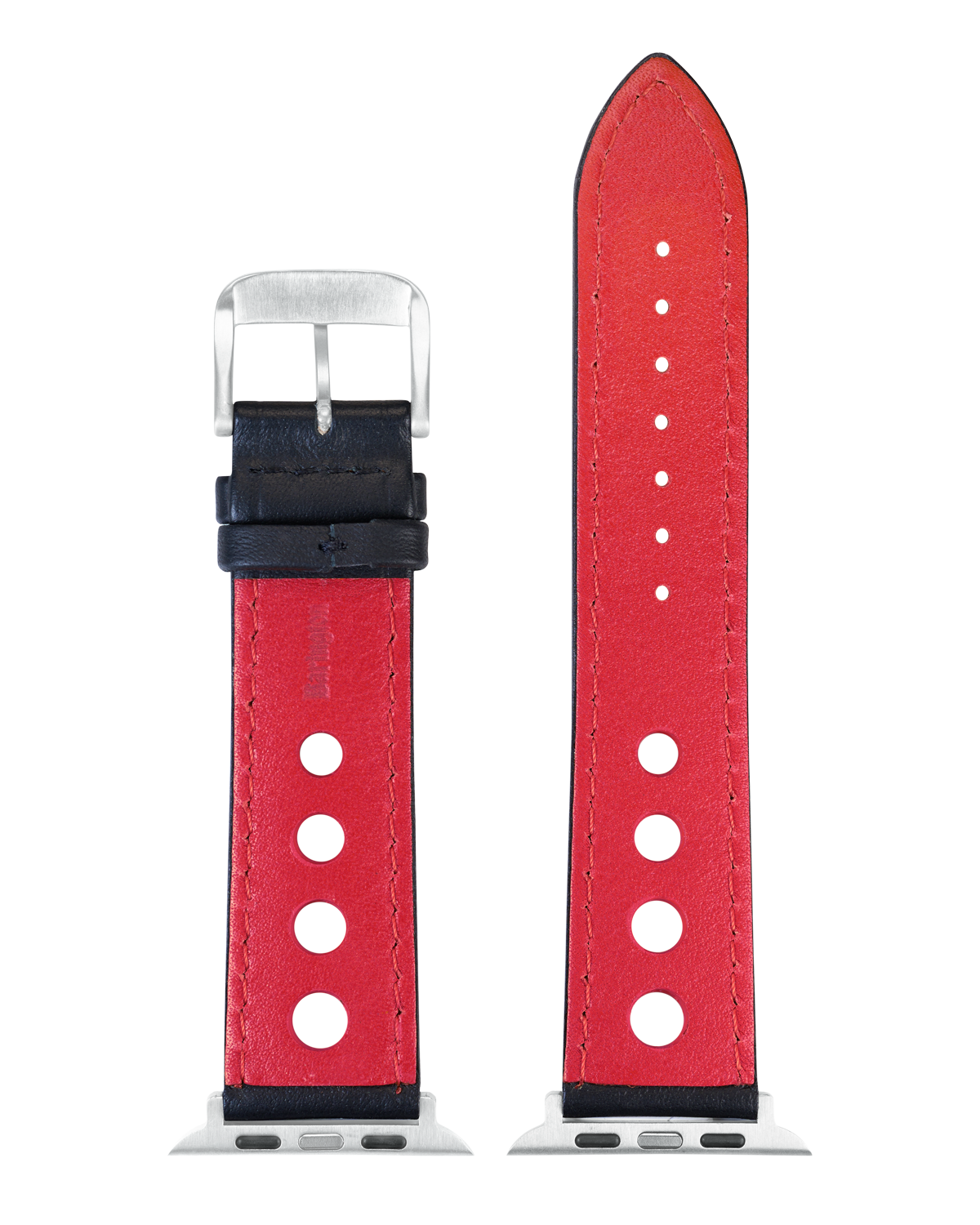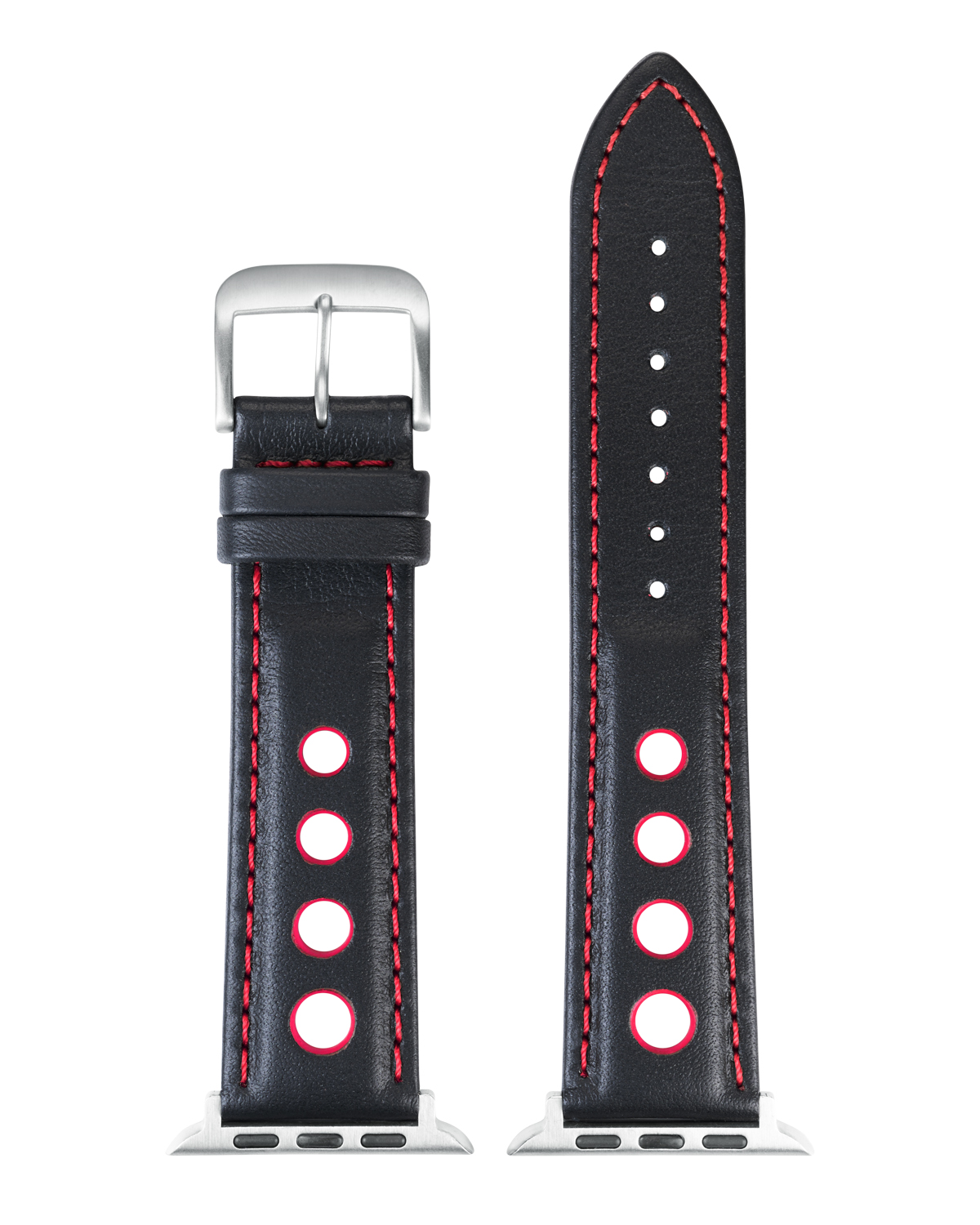 Sportliches Uhrarmband aus echtem RIND-Leder im RACING-Design mit Edelstahl-Dornschließe, inklusive Adapter passend für APPLE WATCH Serie 1 - 10 (+SE)