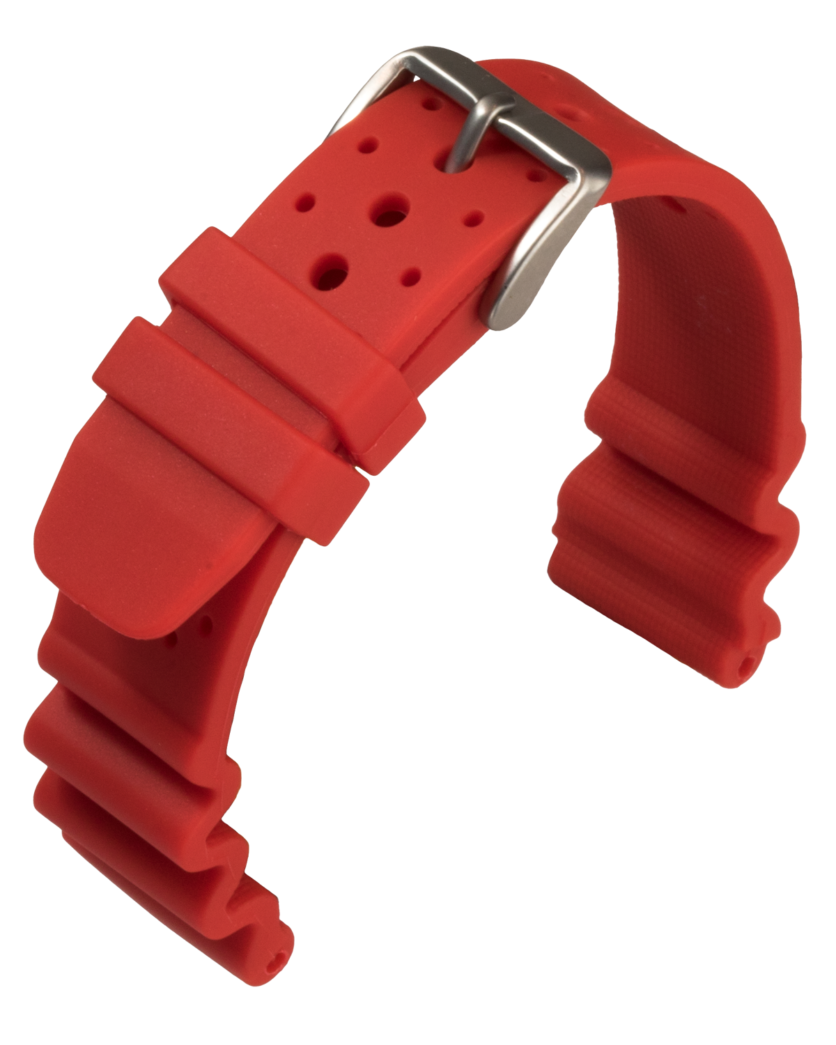 Taucherband aus Kunststoff mit Taucherskala und mattierter Edelstahl-Dornschließe.