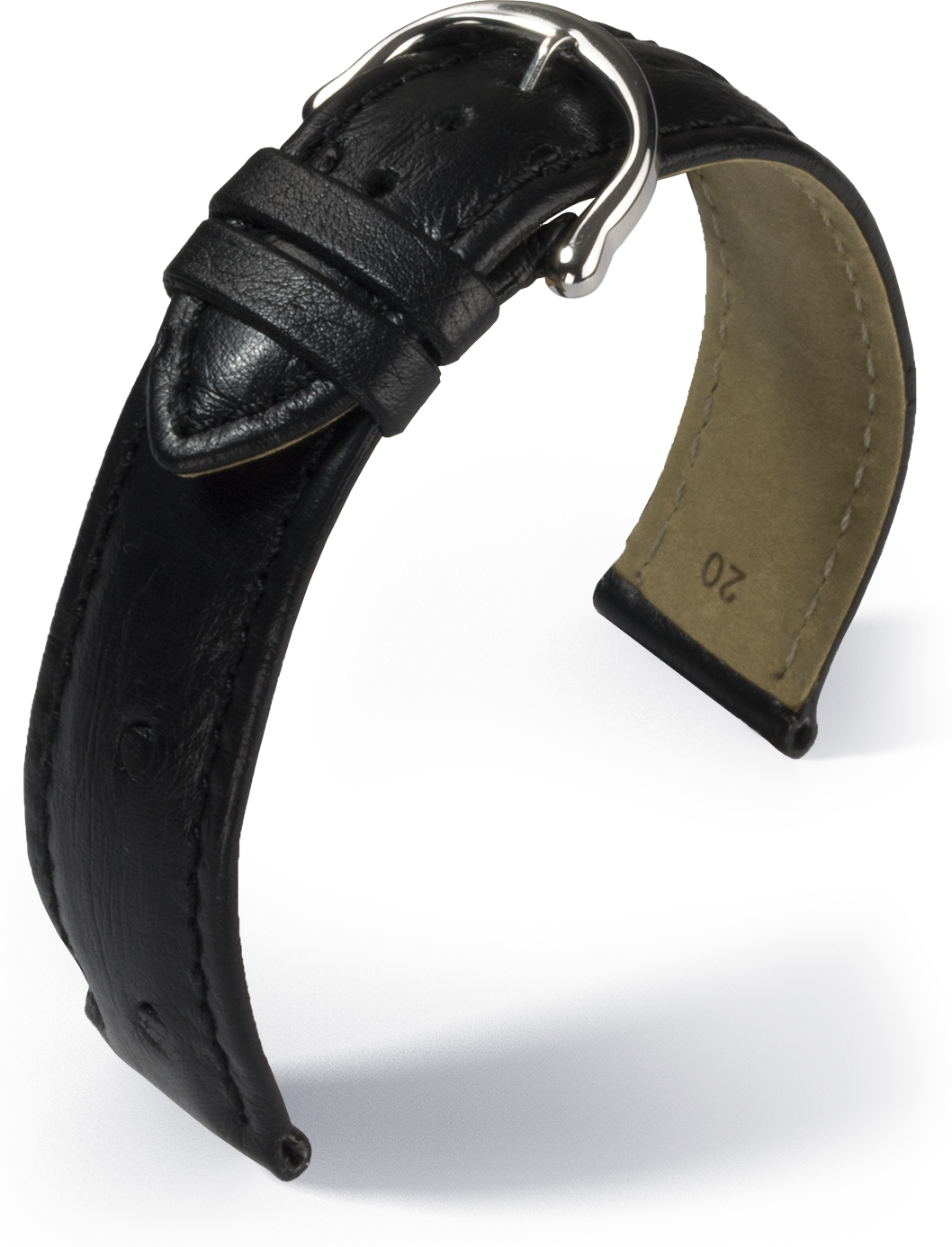 Uhrarmband aus Straussenleder mit typischen Noppen. Rembordiert, leicht gepolstert und mit Maurice Lacroix Symbol. Inclusive Maurice Lacroix Dornschließe.