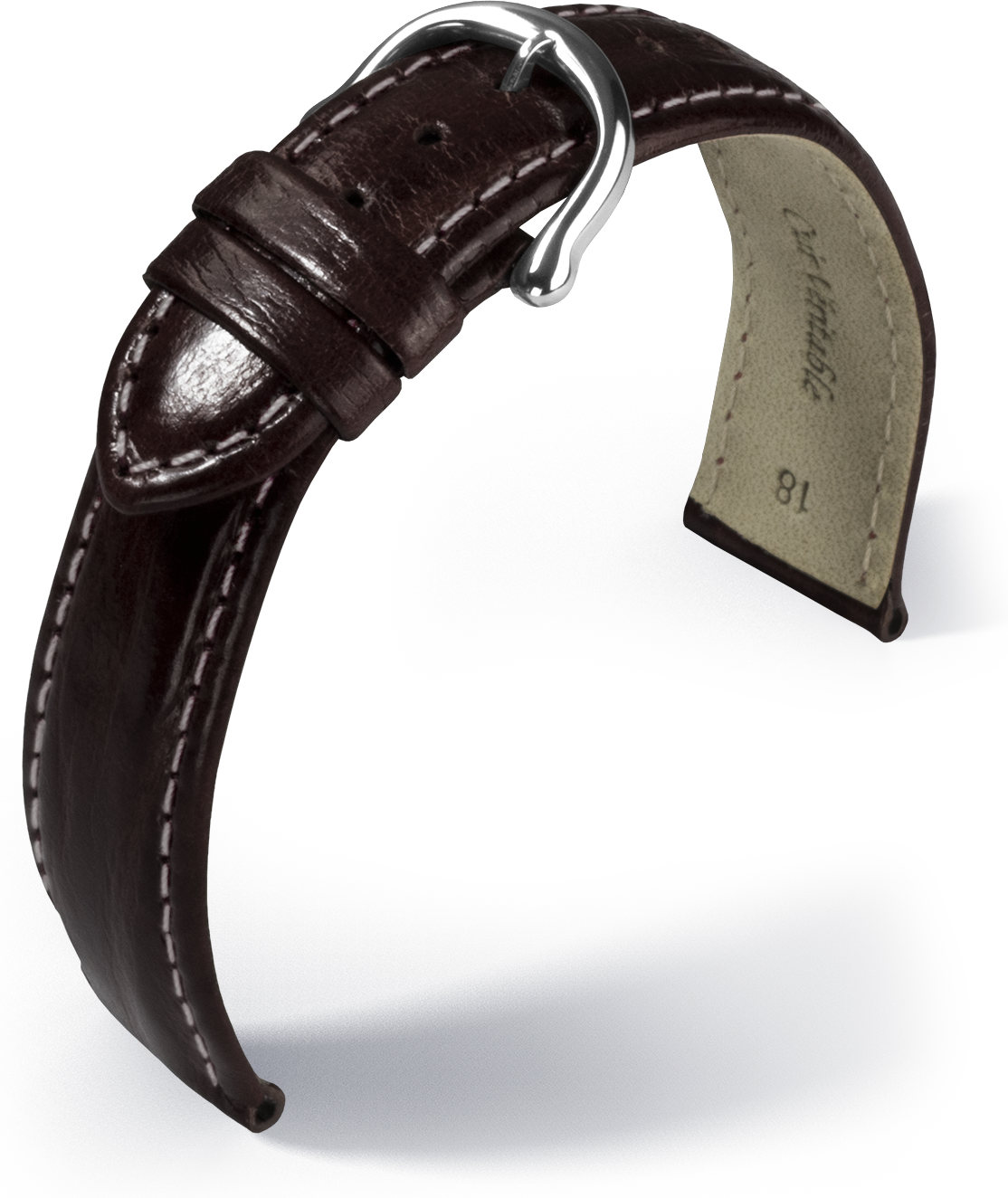 Uhrarmband aus hochwertigem Büffelkalb-Leder. Seidenmattes, rembordiertes und leicht gepolstertes Band mit Symbol. Inclusive Maurice Lacroix Dornschließe.