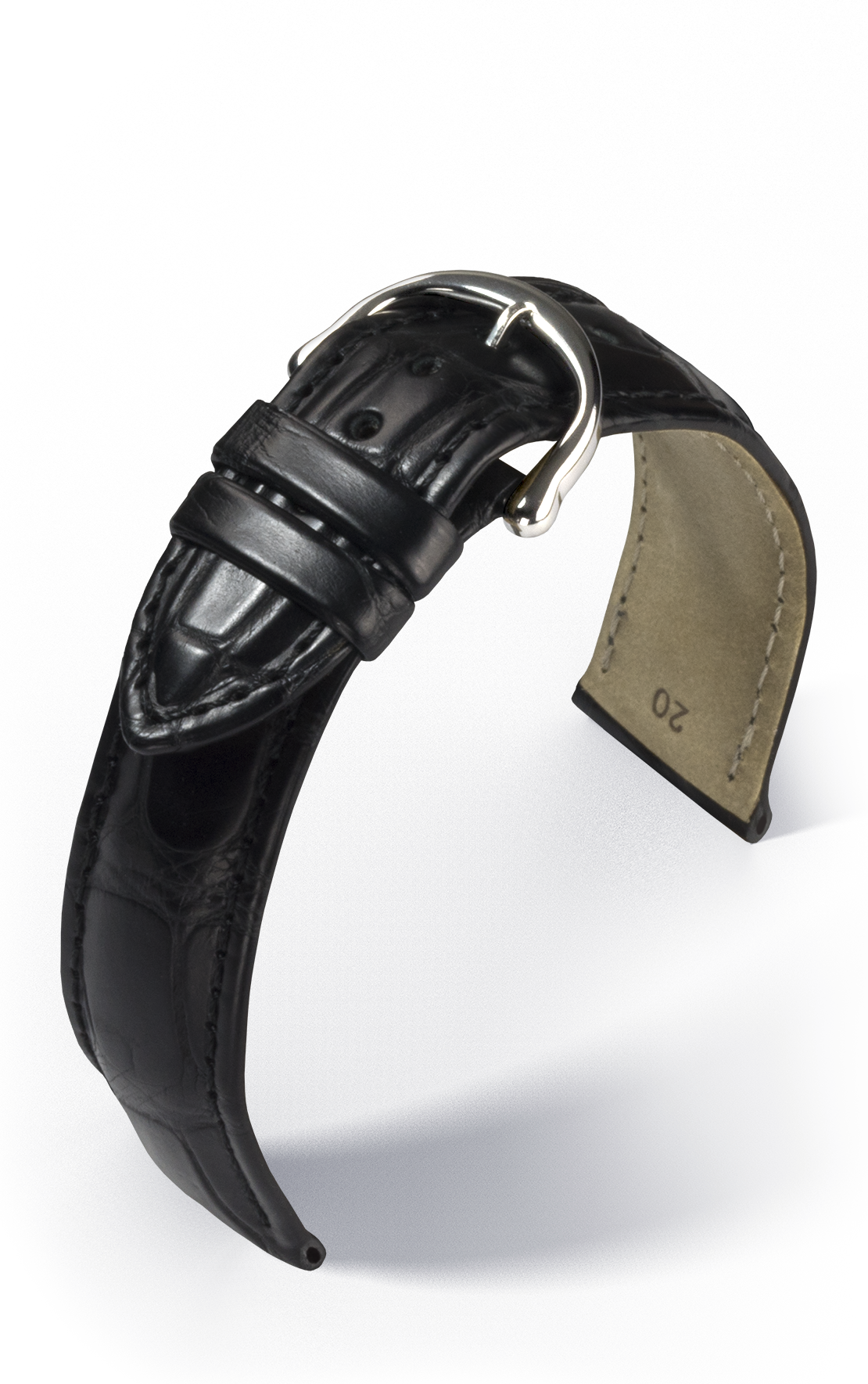 Uhrarmband aus echtem Louisiana-Krokodil-Leder. Rembordiertes und stark bombiertes Band mit Symbol. Inclusive Maurice Lacroix Dornschließe.
