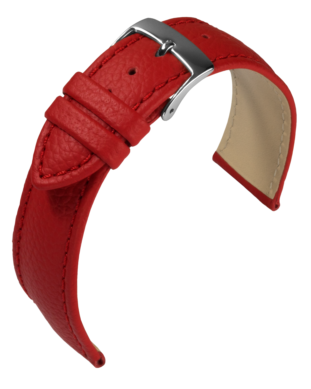 Weiches Rindleder-Uhrarmband mit fein genarbter Oberfläche. Rembordierte Ausführung, leicht gepolstert, hautfreundliches Nubuk-Futterleder und Edelstahl-Dornschließe.