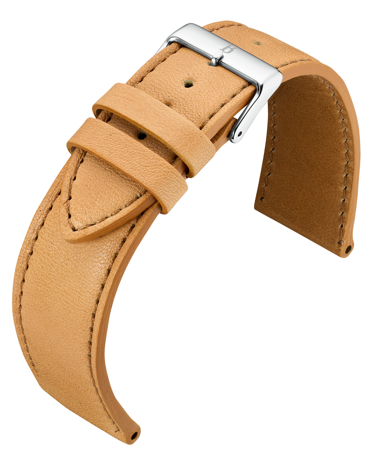 Uhrarmband für Uhren im Bauhaus Design aus hochwertigstem Rindleder "passend für NOMOS". Handpolierte Schnittkante, Edelstahl Dornschließe.