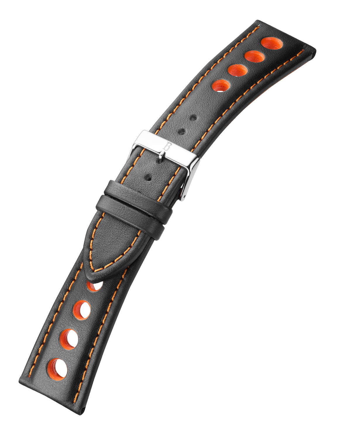 Stark bombiertes Rindleder-Uhrarmband im Racing-Desing. Das Lochmuster, die kräftige Naht und das Futterleder sind farblich abgestimmt. Mit Edelstahl-Dornschließe. Passend für Uhren der Marke TISSOT und viele andere sportliche Uhren.