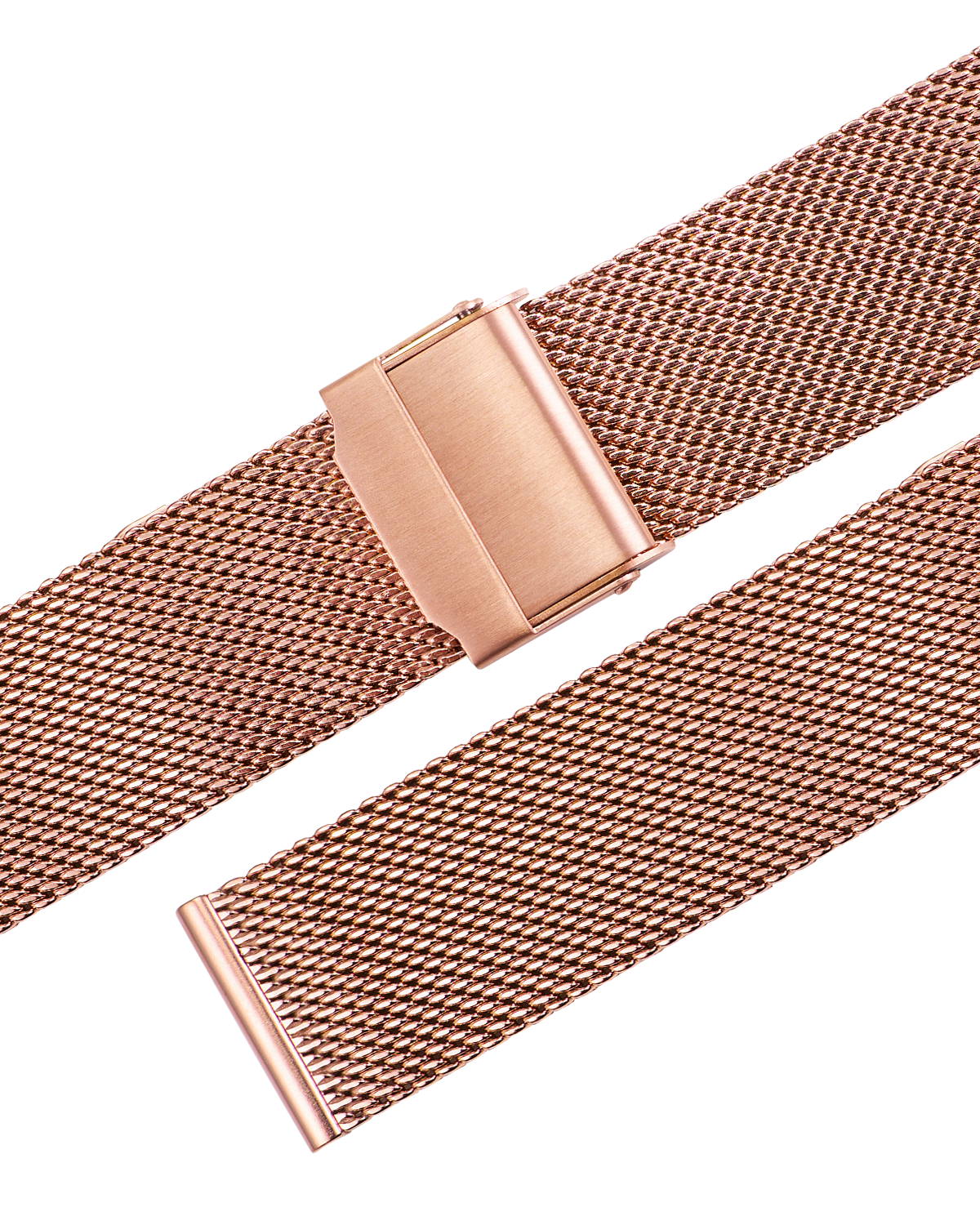 Gleichlaufendes Stalux Metall-Uhrarmband in feinem Milanaise Geflecht, Edelstahl rosevergoldet, Schiebeschließe, Anstoßbreite 16mm, Bandbreite 16mm, Schließenbreite 16mm