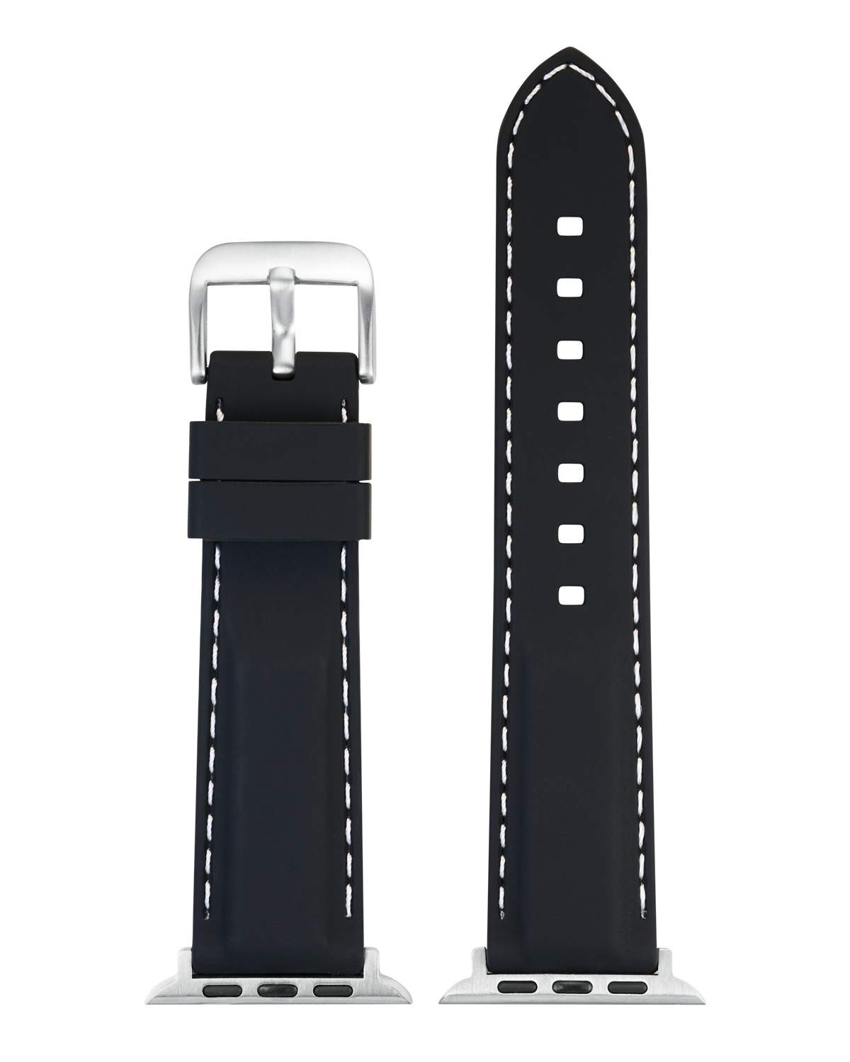 Super weiches SILIKON-Uhrband mit glatter Oberfläche und weißer, sportlicher Kontrastnaht. Damit passt dieses Uhrenarmband perfekt zur APPLE WATCH.