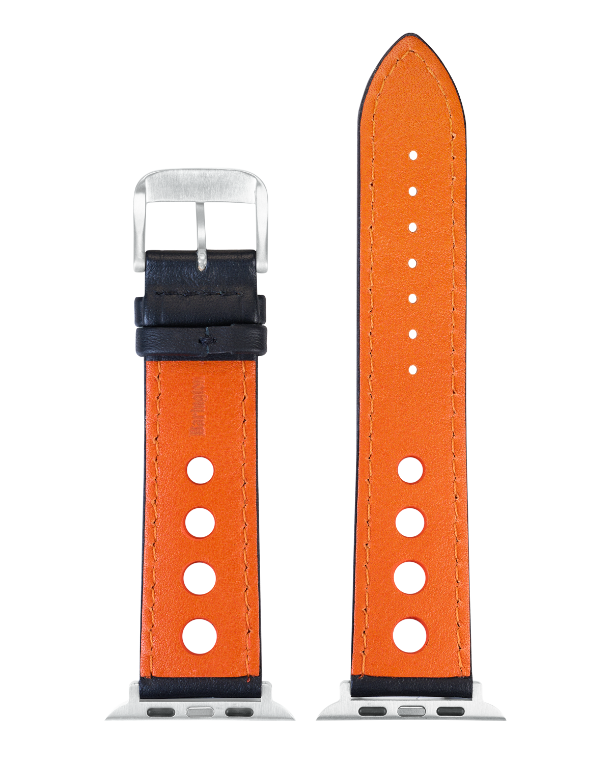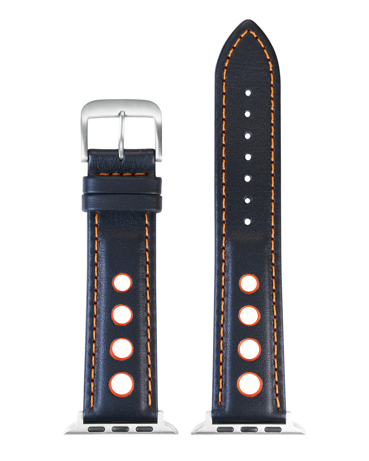 Sportliches Uhrarmband aus echtem RIND-Leder im RACING-Design mit Edelstahl-Dornschließe, inklusive Adapter passend für APPLE WATCH Serie 1 - 10 (+SE)